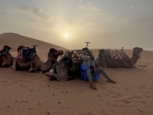 We laten de drukte van Marrakech achter ons en steken het Atlasgebergte over richting de groene Dra-vallei. Deze Vallei is, met zijn 180 km lengte, de langste palmoase van noord-Afrika! We overnachten in het legendarische Zagora. Hiervandaan brengen onze jeeps ons nog dieper de woestijn in, namelijk naar de hoge zandduinen van Erg Chigaga. De rode aarde van Marrakech heeft nu plaats gemaakt voor het oranje zand van de Sahara. De drukte maakt ruimte voor de stilte. En in plaats van toeristen zie je hier nomaden en kamelen. De sterrenhemel is dezelfde als in Marrakech enkel….misschien nog helderder vanuit onze nomadentent (met echte bedden overigens).